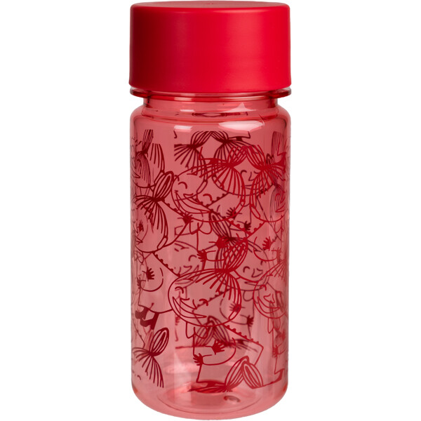 En praktisk 3 dl vannflaske med morsomt Lille My-trykk. Den røde flasken er gjennomsiktig og laget i BPA-fri tritanplast. Under skrukorken har den et avtakbart mellomstykke som gjør det lettere å drikke mindre slurker, selv for yngre barn.