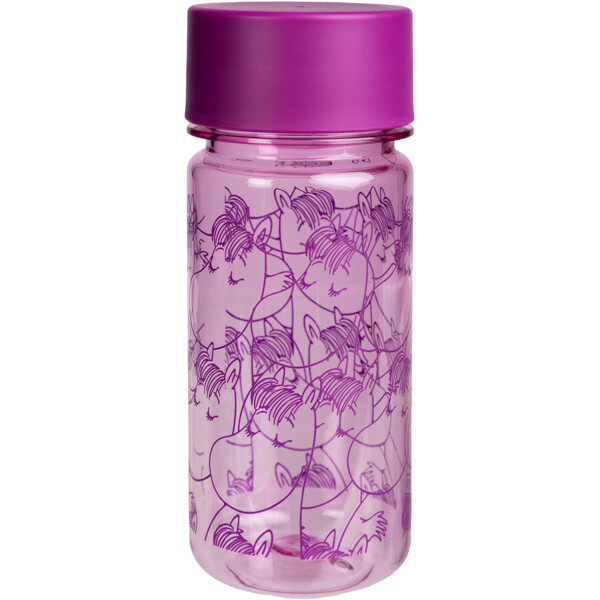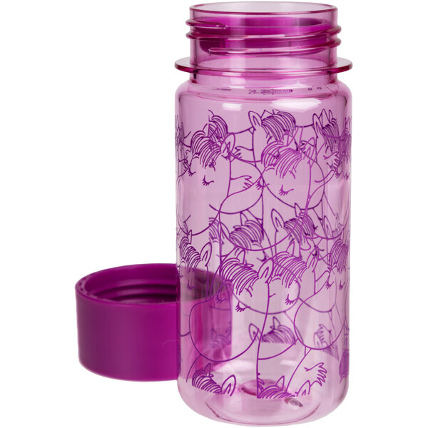 En praktisk 3 dl vannflaske med fint Snorkfrøken-trykk. Den lilla flasken er gjennomsiktig og laget av BPA-fri tritanplast. Under skrukorken har den et avtakbart mellomstykke som gjør det lettere å drikke mindre slurker, også for yngre barn.