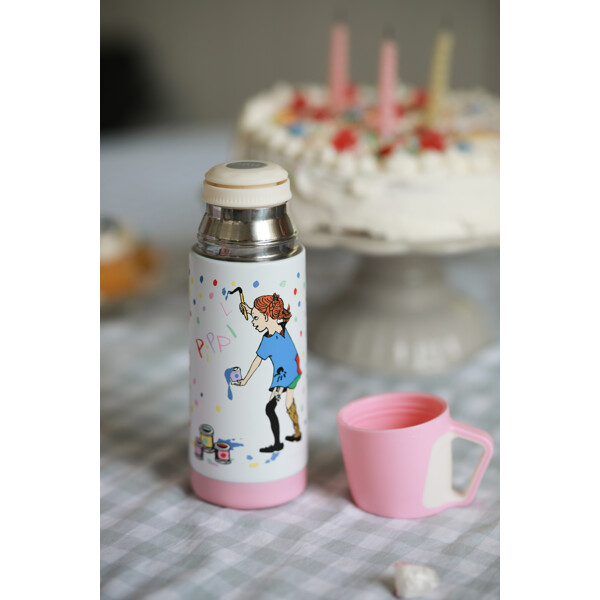 En fantastisk termos i rustfritt stål med Pippi Langstrømpe-motiv.