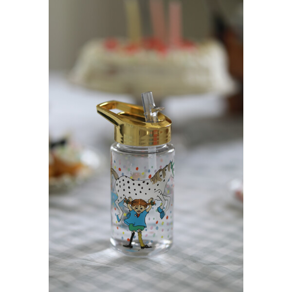 Vannflaske laget i slitesterk BPA-fri plast med et herlig motiv fra bøkene om Pippi Langstrømpe.