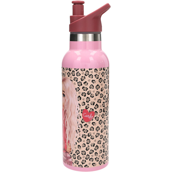 Denne fine rosa drikkeflasken fra TOPModel LEOHEART-serien har et motiv av Fergie og Candy samt et trendy leopardmønster rundt.