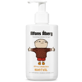 Alfons Himmelsk håndsåpe er spesielt utviklet for sensitive små hender som må vaskes ofte. Den rikelig skummende såpen har en mild fuktighetsgivende effekt og renser effektivt uten å tørke ut. Den er mildt parfymert med en deilig karamellduft og blir barnas favoritt på badet. Alfons Åbergs hudpleieprodukter for barn er skånsomme mot barns sensitive hud. Produktene er laget i Sverige og dermatologisk testet på sensitiv hud.