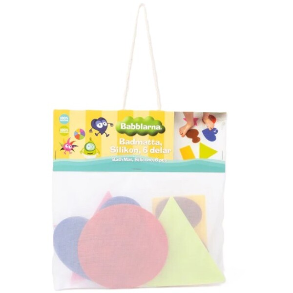 Babblarna Mini Bad/dusjmatte 6-pack er små badekarsmatter som består av smarte sklisikringer. Disse passer både til badekar og dusjkabinett. Sklisikringene festes enkelt med hjelp av sugekopper. Inneholder seks stykker sklisikringer. Gjør barnets bad & dusj til en morsom opplevelse som forener nytte med glede. Mens barnet blir rent, kan dere øve på språket med hjelp av Babblarna.