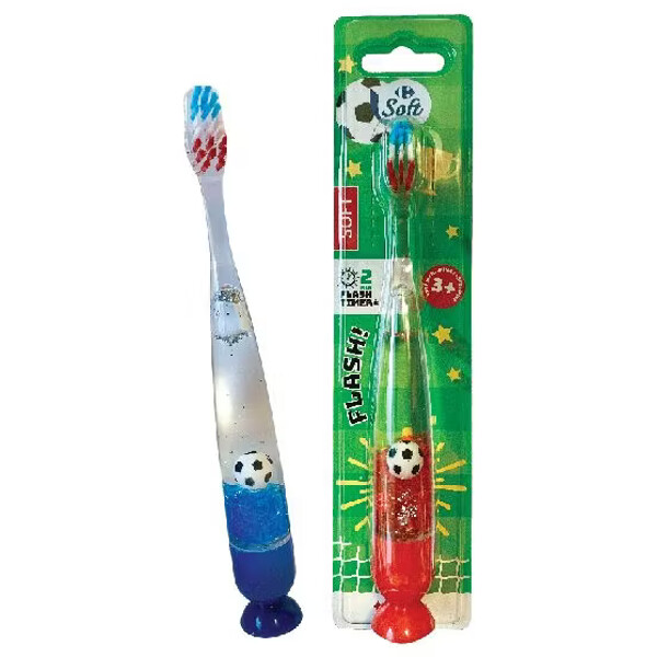Tannbørsten har en myk børstehode fra DuPont. Fra 3 år kan barnet børste selv!