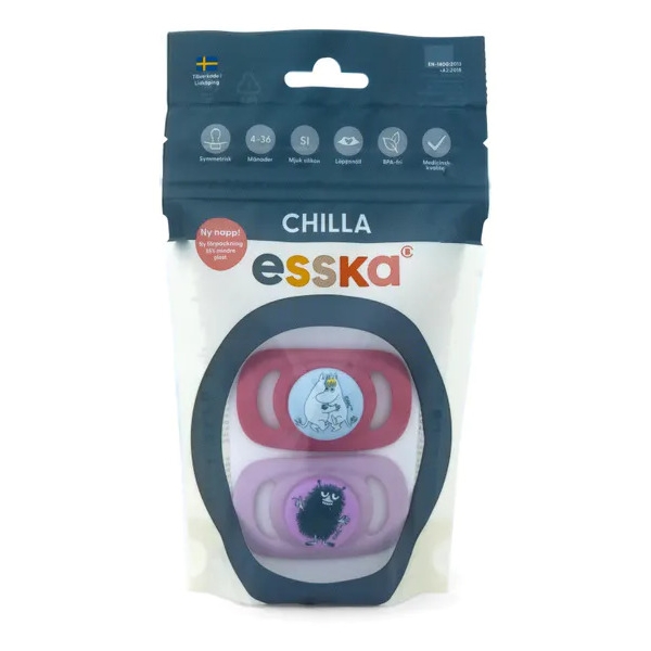 Chilla er oppfølgeren til Happy-smokken. Med nytt design og en mer ergonomisk følelse, men med samme sugedel som Happy, er vår ambisjon å skape verdens peneste og mest komfortable smokk som er luftig og sitter godt mot leppene og med riller for bedre luftstrøm rundt huden .