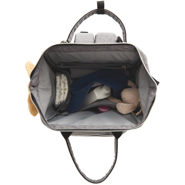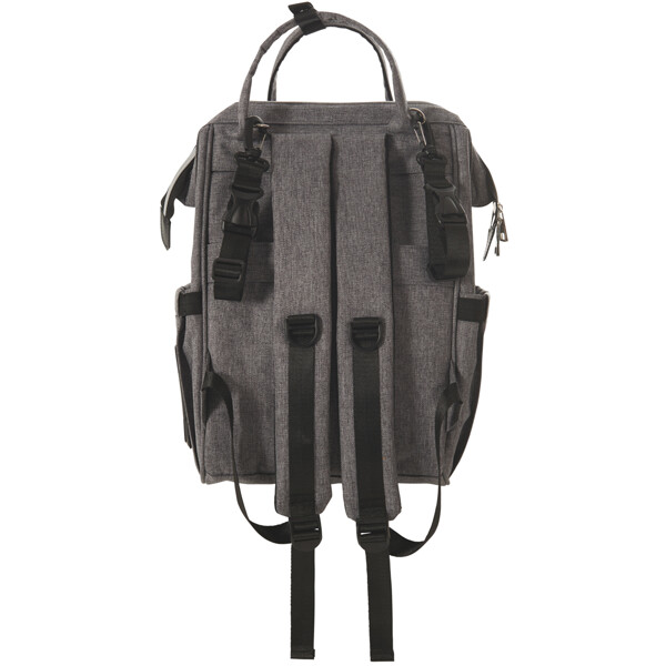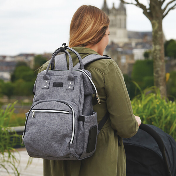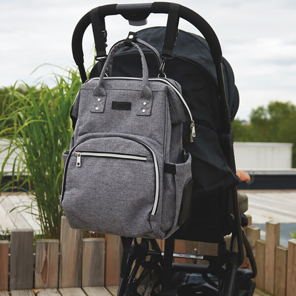 Tinéo Stelleveske Ryggsekk er en stor og praktisk stelleveske i vannavvisende stoff med gjennomtenkte funksjoner for aktive foreldre. Med ventilerende skulderstropper, stor åpning med ståltråd for enkel tilgang til veskens innhold. Stellevesken har flere smarte lommer, inkludert isolerte flaskeholdere og sidelomme for våtservietter. Vesken har også feste for kabinkoffert, for trygg reise med barn. Sammen med stellevesken følger det med barnevognskroker og stelleunderlag.