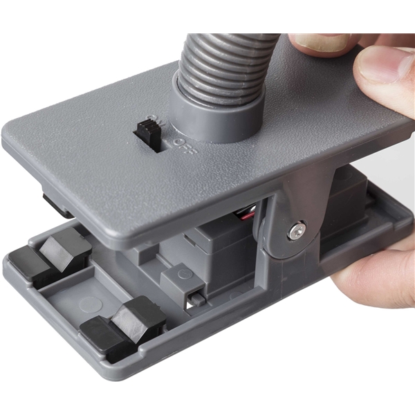 Dooky Stroller Fan Hold babyen din kjølig og komfortabel på varme dager. Viften har ufarlige, babysikre myke skumblader. Viften har en fleksibel arm som lar deg plassere viften i alle retninger. Den fjærbelastede klemmen inneholder batteripakken (2 x AA-batterier kreves) som driver viften. Klipsen kan enkelt festes til enhver barnevogn, barneseng og lekegrind.