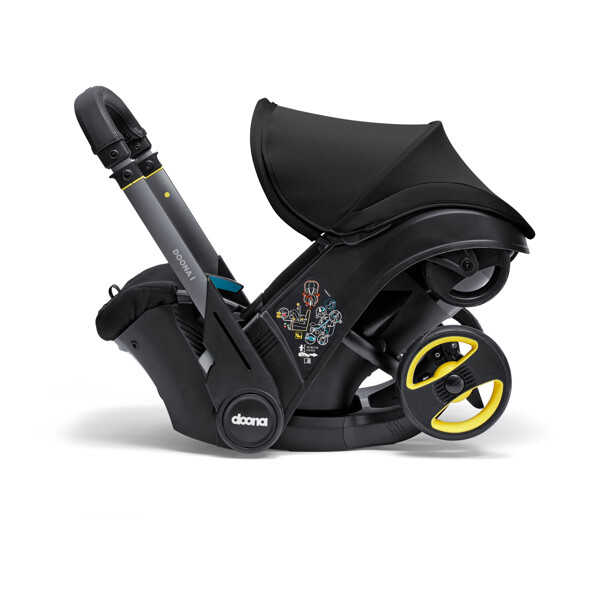 Doona i - et helintegrert reisesystem som gjør at du kan skifte fra babystol til barnevogn på noen sekunder. Med et enkelt knappetrykk felles hjulene ut og babystolen kan kjøres.