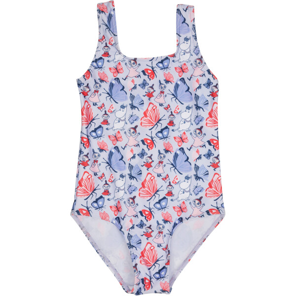 En fin Mummi badedrakt for barn. Badedrakten er foret foran, høy i ryggen med brede og solide skulderstropper. Laget av elastisk, hurtigtørkende polyesterblanding.