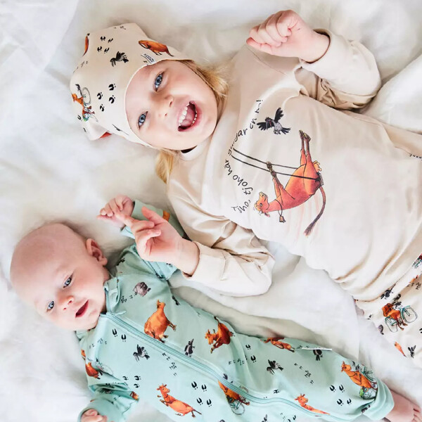 Todelt pysjamas med Mamma Mu i myk og behagelig økologisk bomull. Pyjamasen består av en bukse med strikk i midjen og brede mansjetter, og en langermet trøye også med mansjetter.