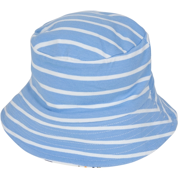 En myk og behagelig mummisolhatt for barn. Den dobbeltsidige hatten er vendbar. Med rand for å beskytte øyne og nakke. Luen er laget med GOTS-sertifisert økologisk bomullsblanding.