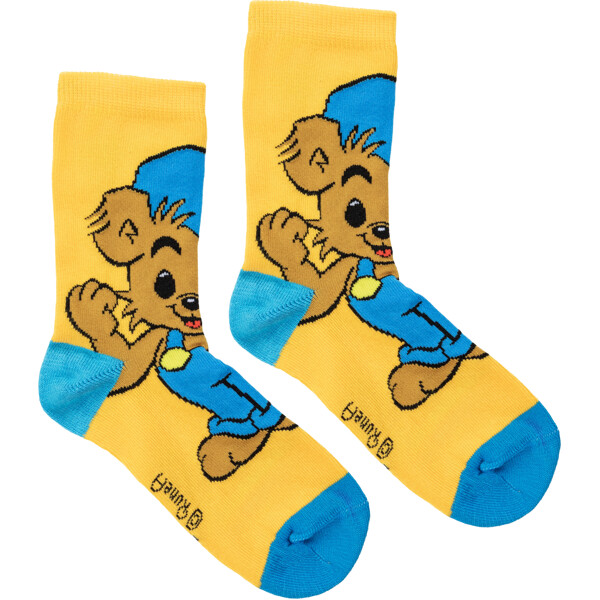 Fargerike Bamse sokker for barn. Laget i elastisk bomullsblanding.