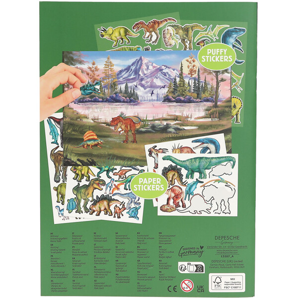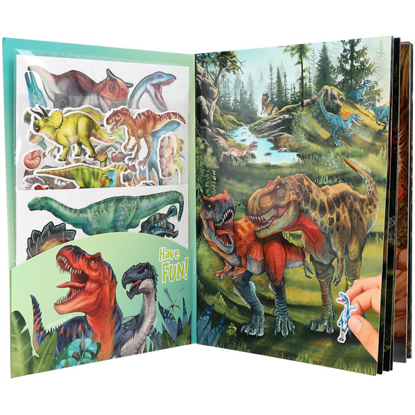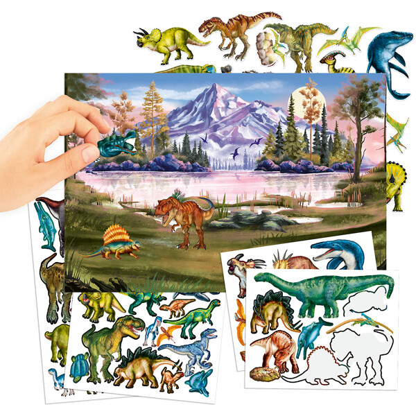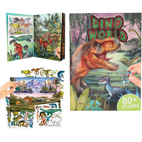 Dinotastisk aktivitetsbok fra Dino World med 84 kule dinosaurklistremerker (4 ark med papirklistremerker, 2 ark med Puffy-klistremerker i skum) som gir liv til de 20 forhistoriske bakgrunnssidene.