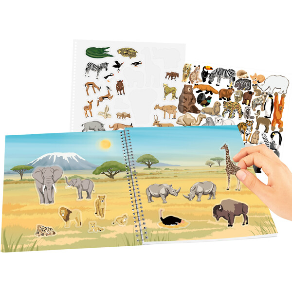 Denne kreative klistremerkeboken har 16 sider med kule bakgrunnsmotiver fra villmarken, 3 sider med filt-klistremerker med flokkede kanter og 1 side med papirklistremerker, og gir dyrevenner masse klistremerkeglede. Kul design: To runde utskjæringer i form av en kikkert på omslaget lar deg titte på klistremerkene.