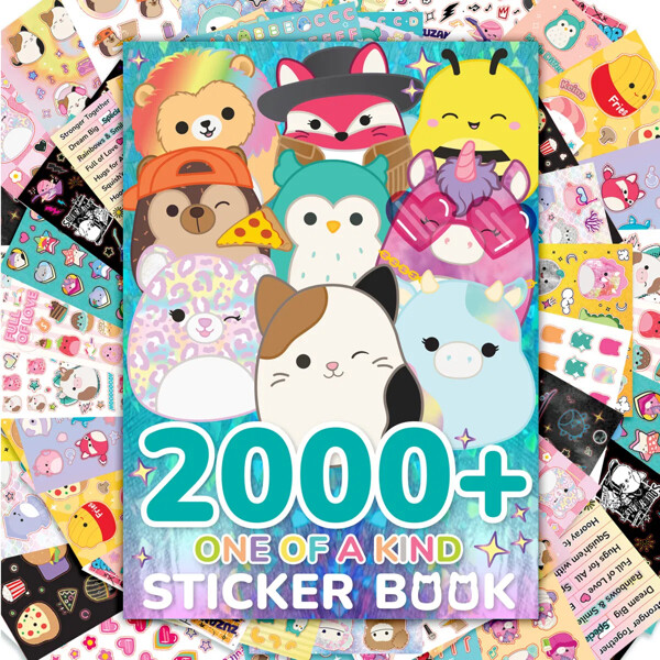 Gjør deg klar til å klemme, klistre og spre glede med Squishmallows 2000+ unike klistremerkebok!
