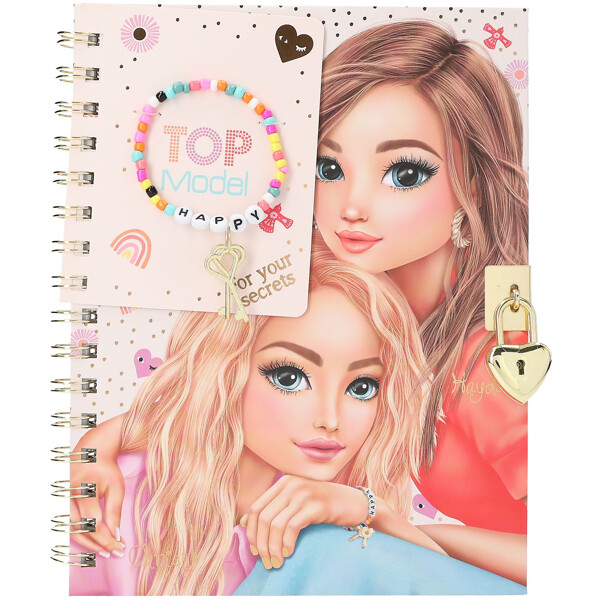 Skriv ned dine innerste tanker, drømmer og opplevelser i denne fine TOPModel-dagboken med et superfint modellmotiv og en hjerteformet lås med nøkler.