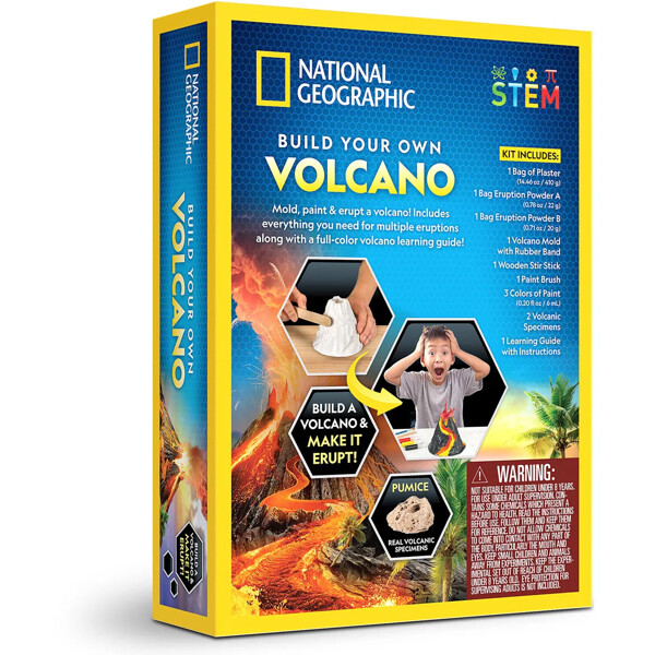 Du skal bygge en vulkan av gips som du deretter maler med de medfølgende fargene. Med hjelp av et pulver kan du deretter få vulkanen din til å få et utbrudd!
