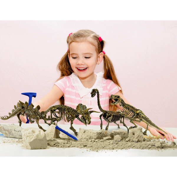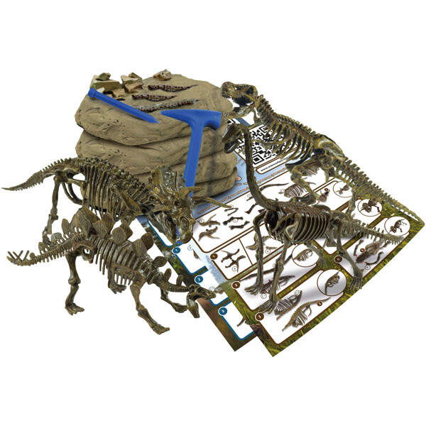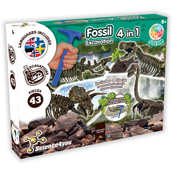 Utforsk den fascinerende verden av paleontologi ved å oppdage 4 fantastiske fossiler: Triceratops, T-Rex, Stegosaurus og Velociraptor. Lær om fossiler, dinosaurenes utryddelse og profesjonelle utgravningsteknikker.