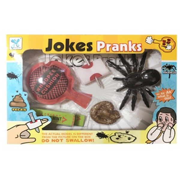 Et sett i 5 deler med forskjellige spøkartikler. Klassikere som prompepute, edderkopp, tyggegummipakke, spiker i plaster og bæsj!