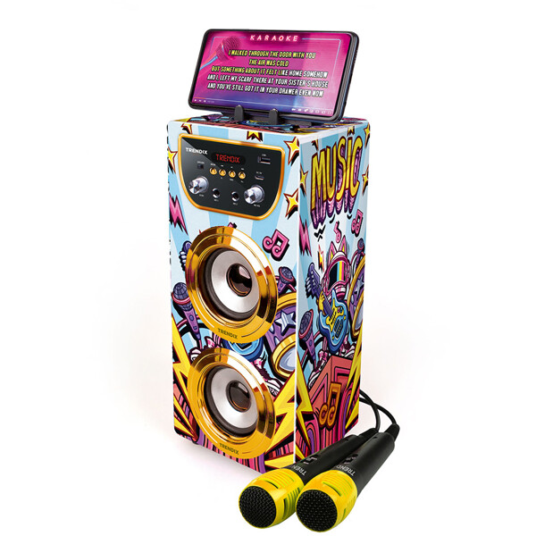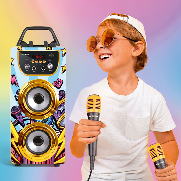 Klar for latter, sang og showtime? Med Trendix Karaoke Maskin får hele familien en morsom aktivitet å samles rundt – perfekt for fredagskosen, barnebursdagen eller regnværsdager innendørs!Funksjoner barn (og voksne!) elsker:To mikrofoner – syng duetter med søsken, venner eller foreldre!10W høyttaler – klart og kraftig lyd som fyller rommet.Bluetooth-tilkobling – spill av favorittsangene deres direkte fra mobilen eller nettbrettet.FM-radio – lytt til favorittsendingene deres direkte i maskinen.Ekko-effekt – gi sangen en profesjonell og morsom touch.Koble sammen flere enheter – få enda større lyd og flere å synge med!Telefonstativ – perfekt for å følge sangtekster eller spillelister direkte fra skjermen.Bærbar med håndtak – lett å ta med mellom barnerommet, stuen eller til bestemor og bestefar.Lades med USB-C – praktisk, raskt og kompatibelt med dagens ladere.Trendix Karaoke Maskin er enkel å bruke, robust nok for små hender og full av musikkglede. Enten det er småstjerner eller hele familiebandet som opptrer – med Trendix blir hver dag litt festligere!