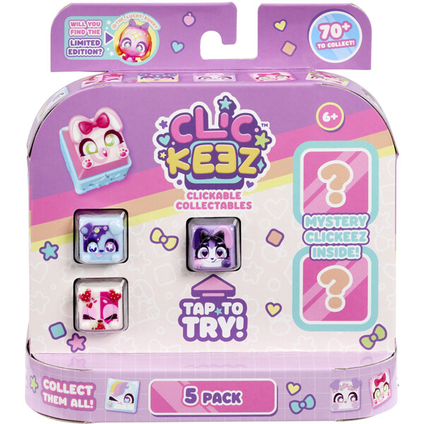 Pakningen inneholder to klikkende og tre vanlige Clickeez.