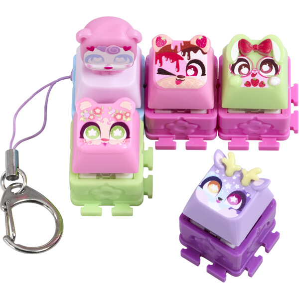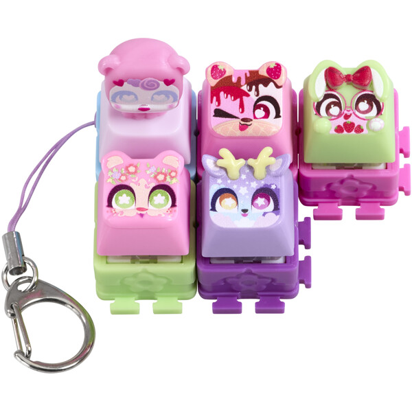 De avhengighetsskapende klikkende Clickeez-fidgitsene kan bæres med deg som en nøkkelring eller festes på ditt eget mekaniske tastatur (selges separat).