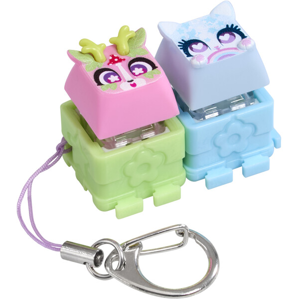 De avhengighetsskapende klikkende Clickeez-fidgetene kan bæres som en nøkkelring eller festes på ditt mekaniske tastatur (selges separat).