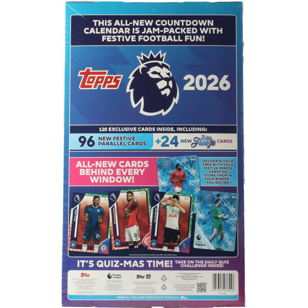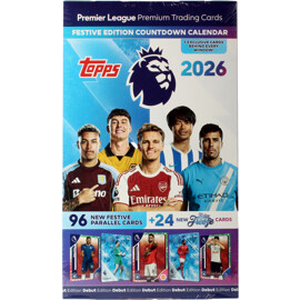 Premier League fra Topps for sesongen 2025/26.I Topps Premier League 2025/26-kolleksjonen finner du alle de beste engelske klubbene og stjernespillerne fra verdens mest populære fotballiga!Fans vil oppleve en samling som aldri før, med et fullpakket basissett, nye kortdesign, ettertraktede innstikk, limited edition-kort og de populære Chrome-kortene. Samlere vil også finne ekte autografer i en utrolig høy frekvens, samt introduksjonen av nummererte parallellkort.Kolleksjonen vil også hylle de største unge talentene i ligaen med helt nye Rookie-logokort samt ikoniske legender fra Premier League Hall of Fame – noe som garanterer spenning i hver pakke og boks for fans i alle aldre!Kanskje har du flaksen til å få tak i et av de ettertraktede autografkortene..?Countdown Calenda inneholder:24 eksklusive festlige nedtellingspakker