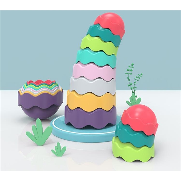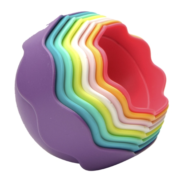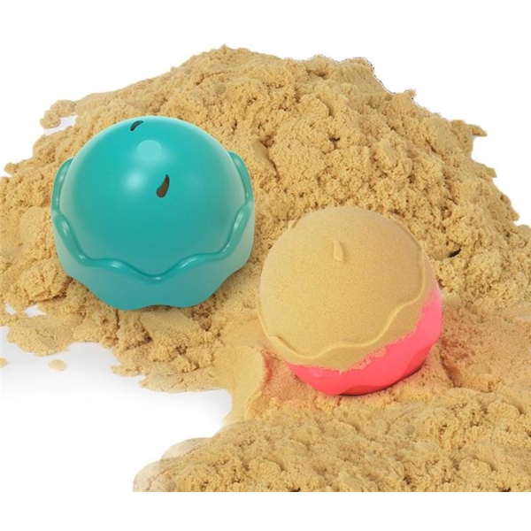 Morsomme kopper, som både kan stables og smekkes sammen til 4 kuler. De fargerike koppene har ulike hull i bunnen, slik at sand og vann kan renne gjennom. De stablebare koppene vil gi flere timers lek i både sand og vann.