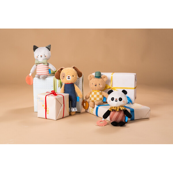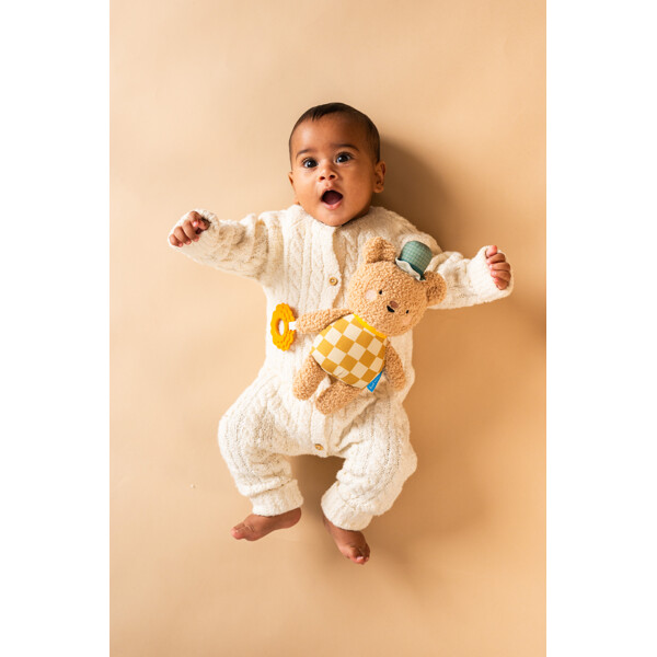 Bjørnevenn med beroligende bitering og myke stoffer, perfekt for spedbarn og små barn takket være størrelse og teksturer.