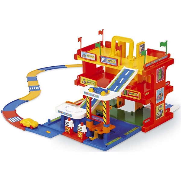 Wader Parkeringsgarage er en supermorsom garage med 3 etasjer, fyllestasjon, parkering, serviceheis og to biler.Wader Parkeringsgarage er ca 90 x 90 x 36 cm, med 3m vei, og det inngår 2 biler.