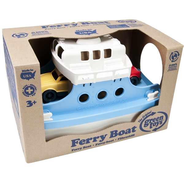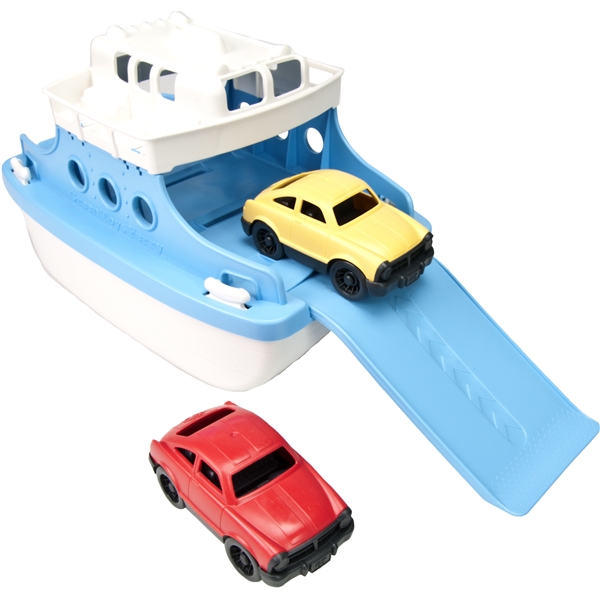 Green Toys Ferje med Biler er en lekker ferge med minibiler, som er klar for eventyr på det store havet!Kast loss og beseir de store bølgene i badekaret, eller i bassenget, med denne robuste fergen. Den er laget av resirkulert plast fra miljøforpakninger. Den har en utdragbar rampe, slik at de små bilene som følger med kan kjøre ombord eller av fergen. Green Toys Ferge med Biler er laget i USA av 100 % resirkulert plast fra miljøforpakninger. Ved å lage leker av gamle miljøforpakninger, er Green Toys med på å minske utslippene av drivhusgasser. Lekene fra Green Toys er robuste, slitesterke og holdbare og tåler maskinvask. Lekene fra Green Toys inneholder ikke BPA, ftalater, PVC eller eksterne belegg. Forpakningene er laget av resirkulert og gjenvinningsbart material, og er trykt med sojablekk.Green Toys Ferge med Biler er ca:Ferge 26 x 16 x 17 cm og minibiler 10 x 5 x 4 cm.