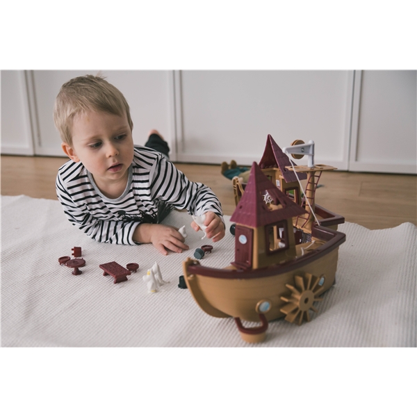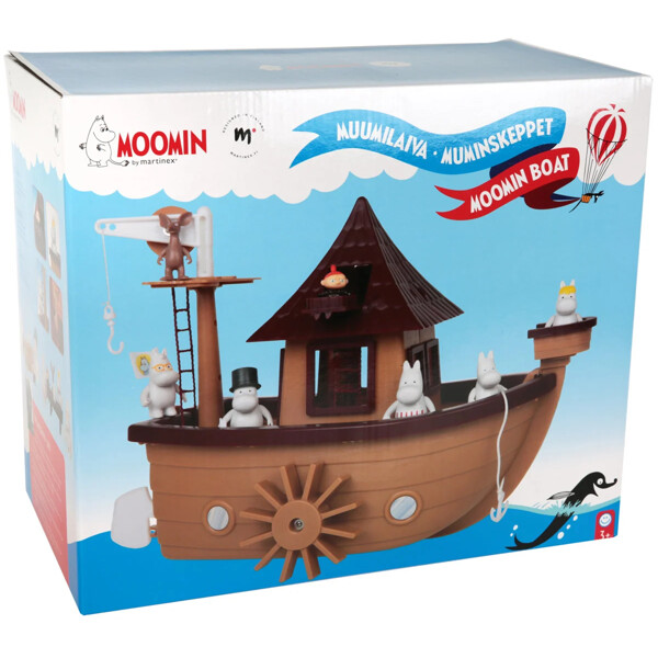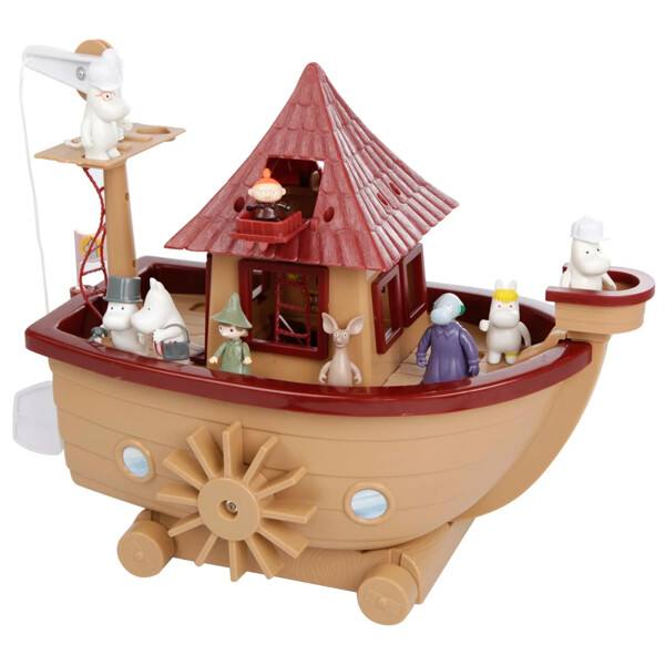 Det har alt de trenger for å klare seg på sine reiser – et fullt utstyrt kjøkken, soverom, spiserom, et utkikkstårn, en styrehytte og mye mer! I settet inngår syv figurer – Mumintrollet, Muminpappa, Muminmamma, Snorkfrøken, Snorken, Sniff og Lille My!