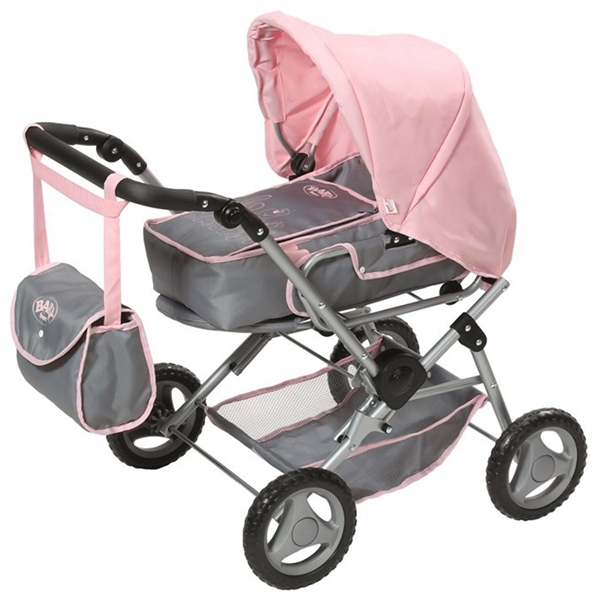 Deluxe BABY born dukkevogn i et nytt svalt grå-rosa design. En virkelig vellaget perle som mange små barn vil elske. Beskyttelsesnettet gir dukken beskyttelse mot vær og vind. Dette kan brettes tilbake så din BABY born kan oppdage verden. Håndtaket kan også justeres for perfekt høyde. Underdelen har godt med plass til alt du trenger på dine utflykter. Naturligtvis kan du ta med din matchende stelleveske, selv uten barnevogn. Originalt tilbehør for BABY born dukker.