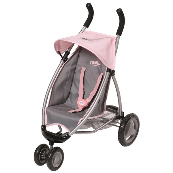 Uansett om du tar en gåtur eller er på vei til byen for shopping, så kommer du snart ikke til å ville gå uten denne justerbare og attraktive barnevogna. Denne moderne ”sportsbarnevognen” er utrustet med doble fremhjul, og er ekstremt enkel å kjøre og styre. Det praktiske oppbevaringsnettet er bra for å transfortere dine nødvendigheter og stelleveske under dine utflykter. Originalt tilbehør for BABY born-merkte dukker.