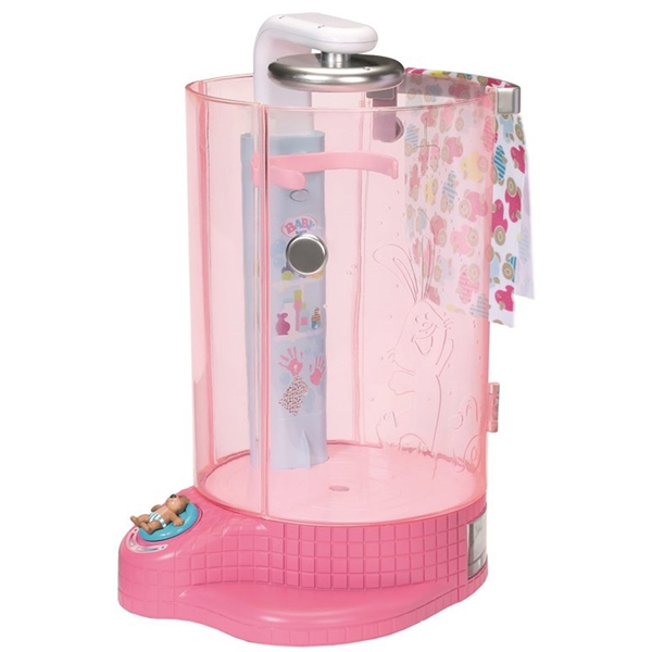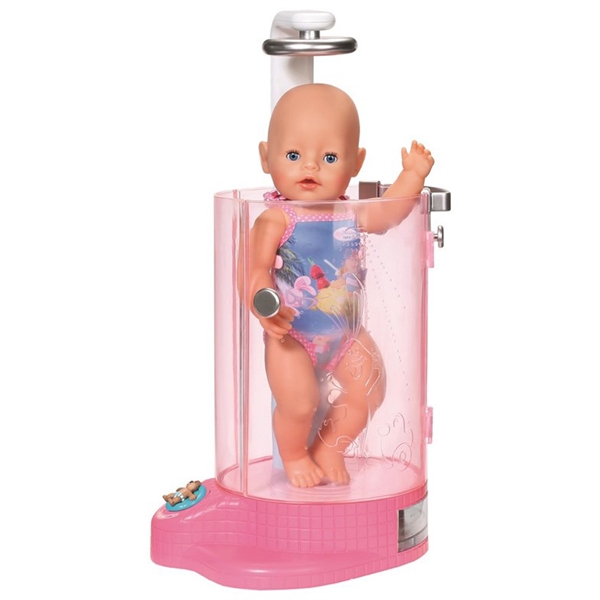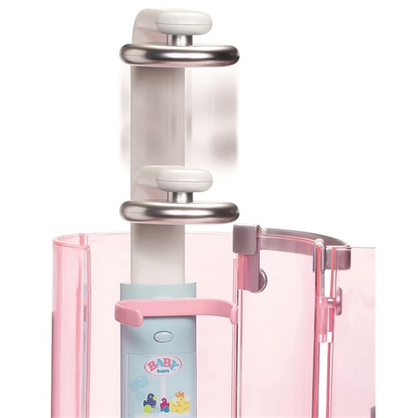 Baby Born liker å ta et bad iblant, men med dette fine dusjkabinettet føles det som å danse i regnet. Baby Born står stødig under det justerbare dusjhodet, og når du skrur på knappen med bjørnen Bruno, kommer vannet til å renne ned over Baby Born. Inkludert dusjkabinett, justerbart dusjhode og håndkletørker. Passer til både Baby Born og Baby Born Sister. Krever batterier (medfølger).
