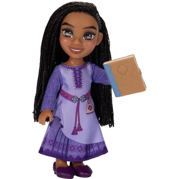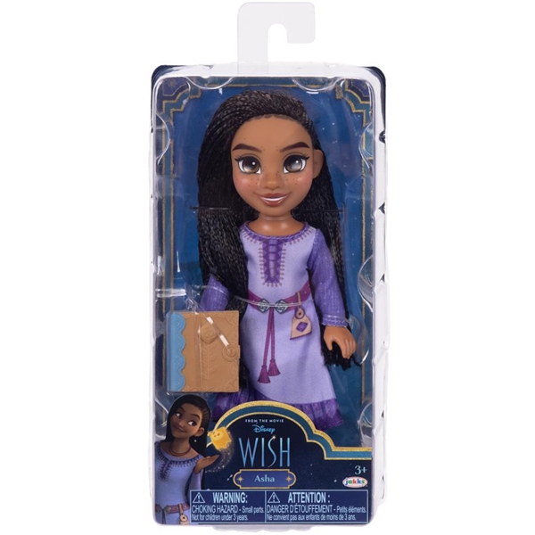 Bli med på en spennende reise med ditt eget ønske i hjertet med denne Asha-dukken. Kledd i det lilla antrekket sitt akkurat som i Disneys nye animasjonsfilm Wish, kommer Asha med dagboken sin. Denne lille dukken er klar for mye lek! Asha har en perfekt lommestørrelse (ca. 15 cm) og kan reise med deg overalt slik at du kan dra på magiske eventyr uansett hvor du går.