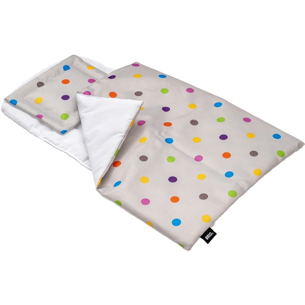 BRIO Sengesettet til Dukkevogn er et sengesett med en myk madrass, teppe og pute. Sengesettet er lysegrått med fargerike prikker på og er varmt og koselig for barnet å krype i. Sengesettet er laget av høykvalitets tekstiler og kan maskinvaskes i 30 grader. Ordne barnevognen og la barnet hviske søtt i barnevognen på turen.