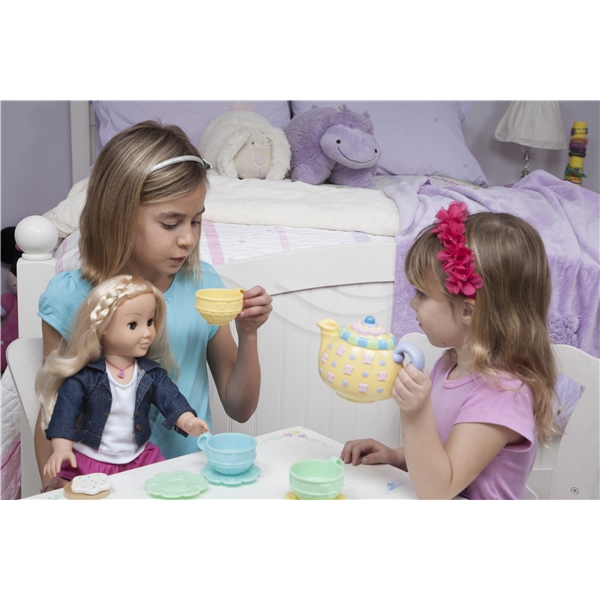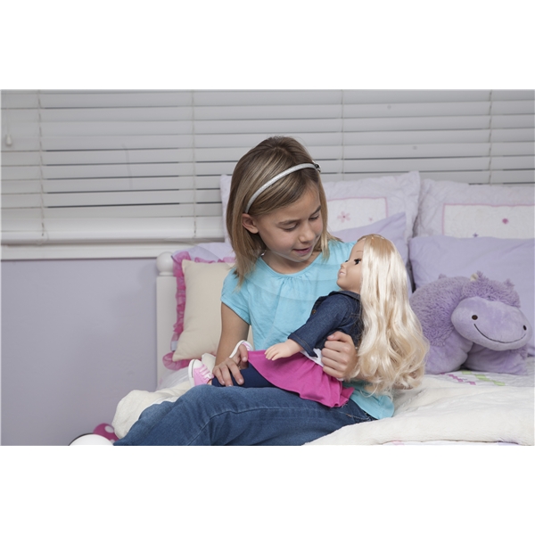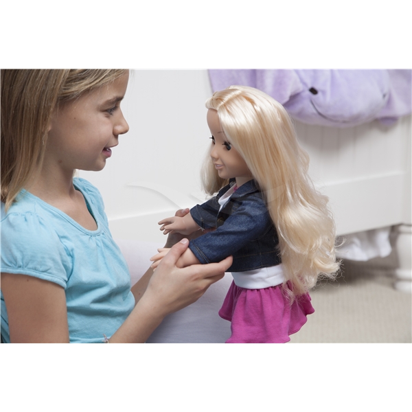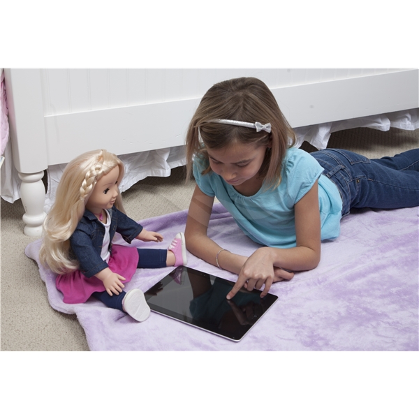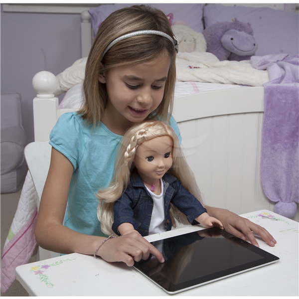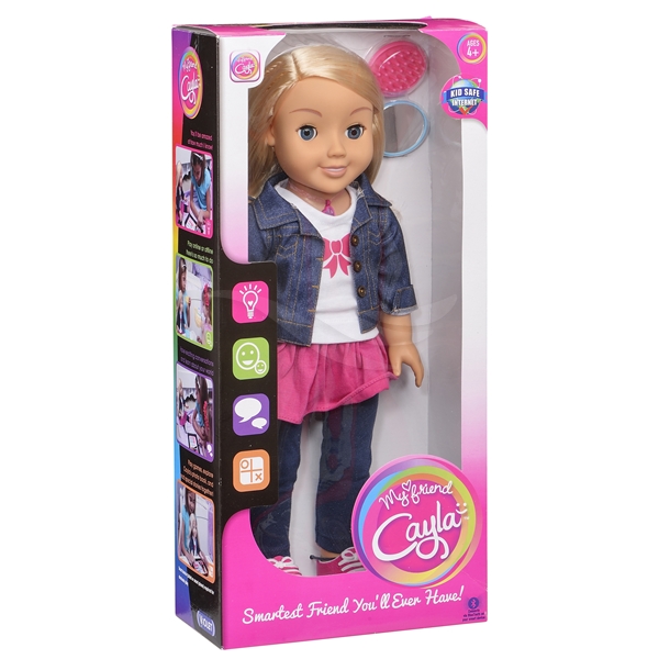 My Friend Cayla er en interaktiv dukke som ble kåret til Årets Leke 2014!Cayla er en interaktiv og smart dukke som kommer til å bli barnet ditt sin nye bestevenn. I grunnen er Cayla en dukke som har fåtten 7-år gammel jentes personlighet og stemmen fra Siri, iOS eller Android.Cayla kan svare på kompliserte spørsmål som ”hva blir 144 ganger 57?” ogpersonlige spørsmål som ”hva er din favorittfarge?”. Du kan spørre henne om matte, geografi, vær, kjente personer, historie, hva klokken er og mye mer! My Friend Cayla har vakkert langt blondt hår som kan børstes og er kledd i trendy klær og sko. Cayla kan flere forskjellige språk. Teknisk sett fungerer Cayla-dukken sammen med en app i en iOS- eller Android-enhet. Dukken fungerer på samme måte som Bluetooth-høytalere og Bluetooth-mikrofoner, og det er appen som vekker Cayla til livet.Når du stiller et spørsmål til Cayla forvandler appen det du sier til tekst og så brukes teksten til å søke etter et svar i appens database. Hvis du stiller et personlig spørsmål til Cayla som ”hva er din favorittfarge?” henter hun svaret fra sin egen database uten å bruke internett. Hvis du spør henne om noe som ikke finnes i databasen søker hun via internett etter et svar.Til din Cayla-dukke får du med 1 hårbørste og 1 speil. My Friend Cayla er 45 cm.