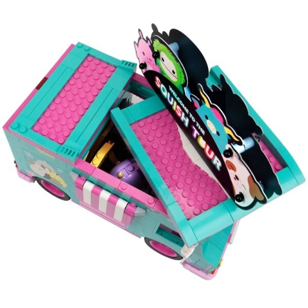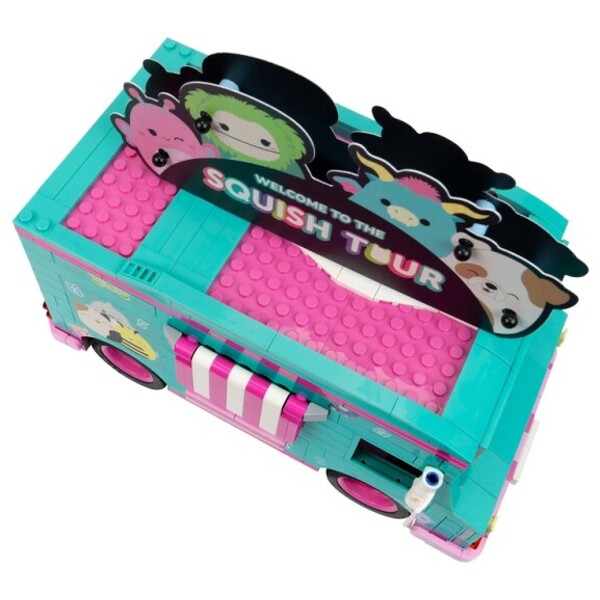 Ta en tur med Cam, Bubba og Brina! Dette Squishmallows-byggesettet er inspirert av den ikoniske Squish Tour Van og har en luksuriøs innredning med mange detaljer.