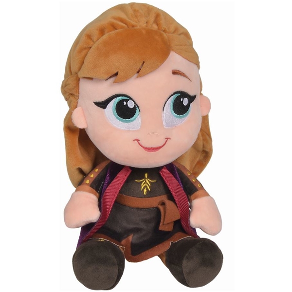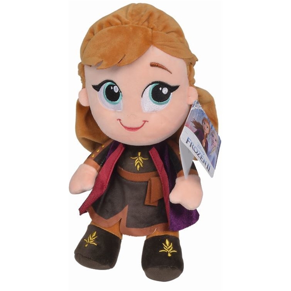 Disney Frozen 2 Anna Dukke 25 cm fra Arendal i form av ett søtt kosedyr. Anna er lillesøsteren til prinsesse Elsa og hun er den nåværende dronningen av Arendal. Den myke Anna har de ikoniske klærne fra filmen og store, vennlige grønne øyne. P>