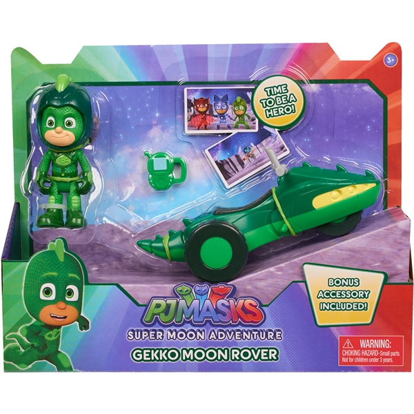 Gecko med Månekjøretøy. Med dette kjøretøyet blir leken med dine Pysjhelter enda gøyere. Inkl. figur og bonustilbehør.