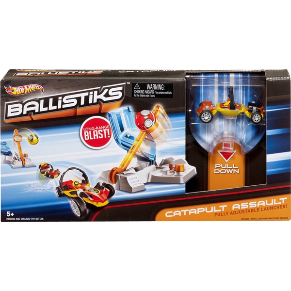 Sikt og skyt på valgfrie mål med dette stuntsettet, og gjør nye stunt som vanlige Hot Wheels-biler ikke klarer. Med katapultutskyteren kan du treffe ethvert mål med dine Ballistiks. Sikt gjennom å justere vinkelen og forandre spenningen etter avstandet, d