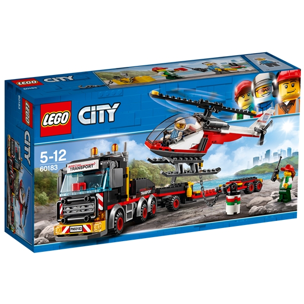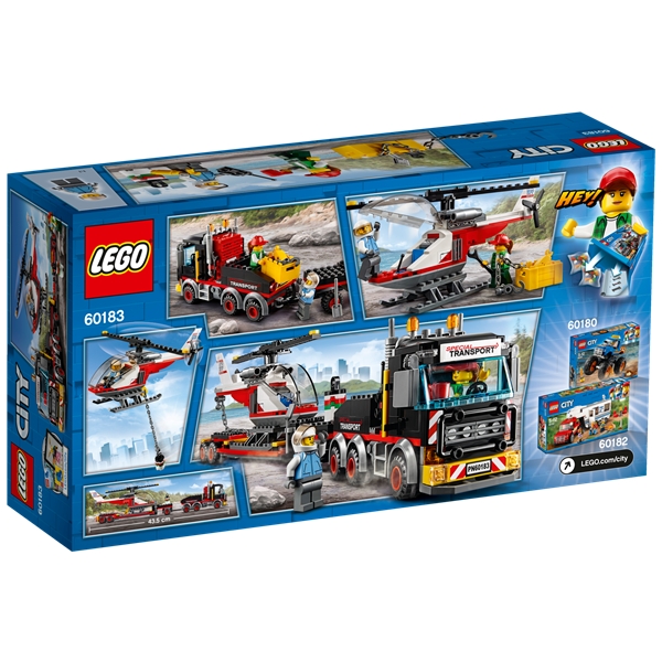 Begi deg til byggeplassen utenfor byen med settet LEGO® City Tung transport, med lastebil med åpningsbar hytte, verktøyskasse, frontbøyle og avtakbar tilhenger, pluss et helikopter med spinnrotorer, åpningsbar cockpit og kjede. Dette populære leketøyet inneholder 2 minifigurer.
