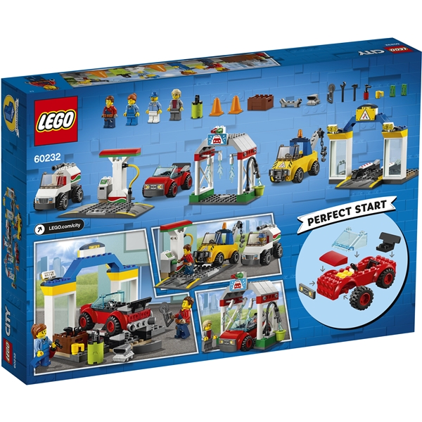 Gi den unge bilmekanikeren en god start med dette settet fra LEGO. LEGO City Town 60232 Bilverksted er inspirert av LEGO City TV-serien (ny for 2019). Settet er spesielt designet for å være morsomt og lett for de minste LEGO-entusiastene. Det er blant annet bilvask, sportsbil, taubil og tankvogn inkludert i settet. På verkstedet kan du ta imot bilene og mekke i vei. Er bilen tom for bensin kan du fylle tanken med bensinpumpen. Den enkle bygg og spillguiden som følger med gjør det enkelt for ditt barn og forstå formålet med byggesettet. Gi hver LEGO-byggmester en fantastisk byggerfaring med Instructions PLUS, som er tilgjengelig i LEGO Life-appen for smarttelefoner og nettbrett. Med de enkle, intuitive bygningsinstruksjonene kan barn zoome, rotere og visualisere konstruksjonen med den spesielle spøkelsesmodusen mens du bygger. Instructions PLUS er også perfekt for yngre byggere som styres gjennom byggeprosessen, slik at de opplever følelsen av suksess alene. Med dette kule lekesettet fra LEGO følger det også med 4 minifigurer. Kjør bilen opp på rampen og start servicen. Fullfør servicen med en bilvask og kunden vil bli strålende fornøyd.