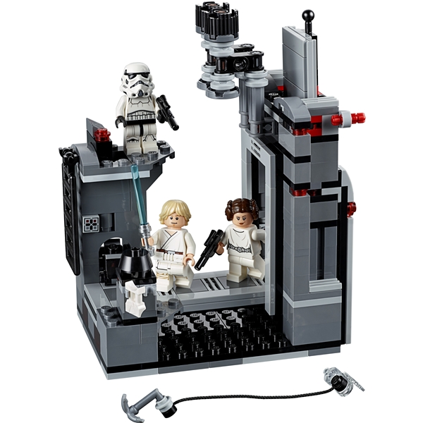 Hjelp Luke Skywalker og prinsessen Leia og gjennomføre en modig flukt fra Dødsstjernen! Dra i spaken for å stenge døren og dra så inn broen. Vri på rattet for å få stormtroppsoldaten til å falle og bruk jernkroken slik at Luke og Leia kan svinge seg i sikkerhet. Kommer hjeltene til å klare seg? Det er helt opp til deg!