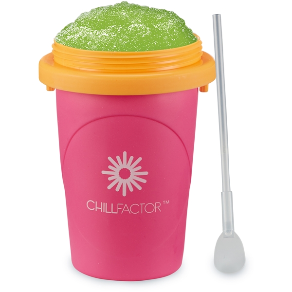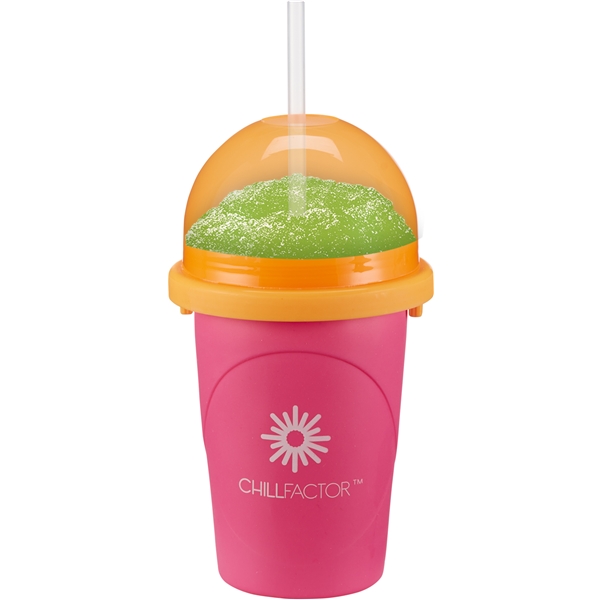 Den slushy maker Chill Factor Squeeze-kruset er lett å bære slik at du kan nyte slushyen din hvor som helst! Du kan lage slushy av alle dine favorittkjølte drinker - juice, sjokolademelk, brus og mer! Bruk naturlig fruktjuice for å lage deilig og sunn slurhy. Frys, klem, nyt!