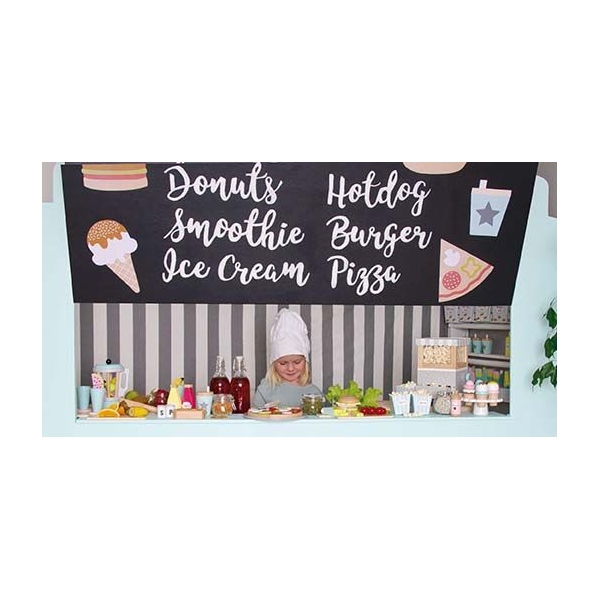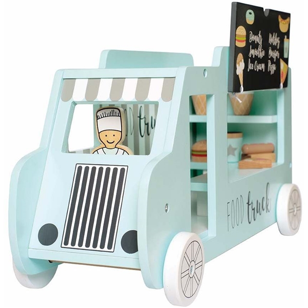 Inneholder: 1 matbil, 1 kokk, 1 smultring, 2 is, 1 hamburger, 1 pølse med brød, 1 pizzaskive, 1 drikke og 1 avtagbart flagg p >