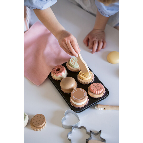 Denne typen leke oppmuntrer til kreativ lek, samtidig som den introduserer barna til bakingens magi. Perfekt for små bakere som vil eksperimentere i sitt late som-kjøkken og by familie og venner på sine oppdiktede godsaker.