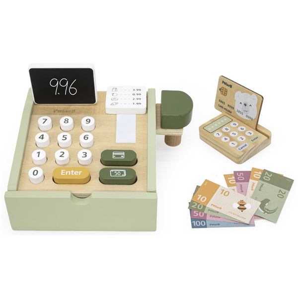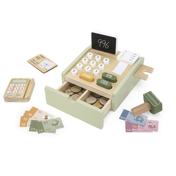 En fin kassaapparat fra VIGA! Kassaapparaten har alt den lille butikkeieren kan tenkes å trenge for å ta betalt. Kontantkasse, kvitteringsrull, kortleser og mye mer.
